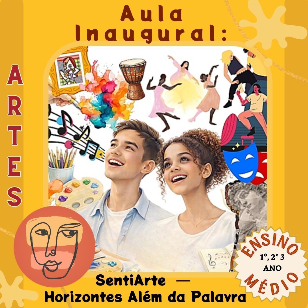Material completo para aula inaugural de Artes, elaborado para iniciar o ano letivo de forma sensível, expressiva e significativa, apresentando a arte como linguagem, experiência e forma de compreender o mundo para além das palavras.