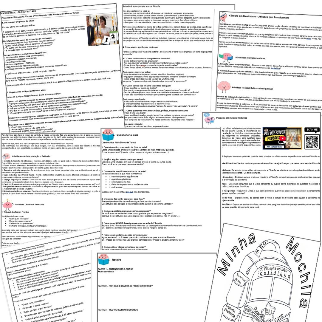* Análise filosófica sobre identidade, projetos de vida, liberdade, responsabilidade e futuro — trazendo pensamentos de Arendt, Kierkegaard, Bauman e Paulo Freire em linguagem simples e envolvente.