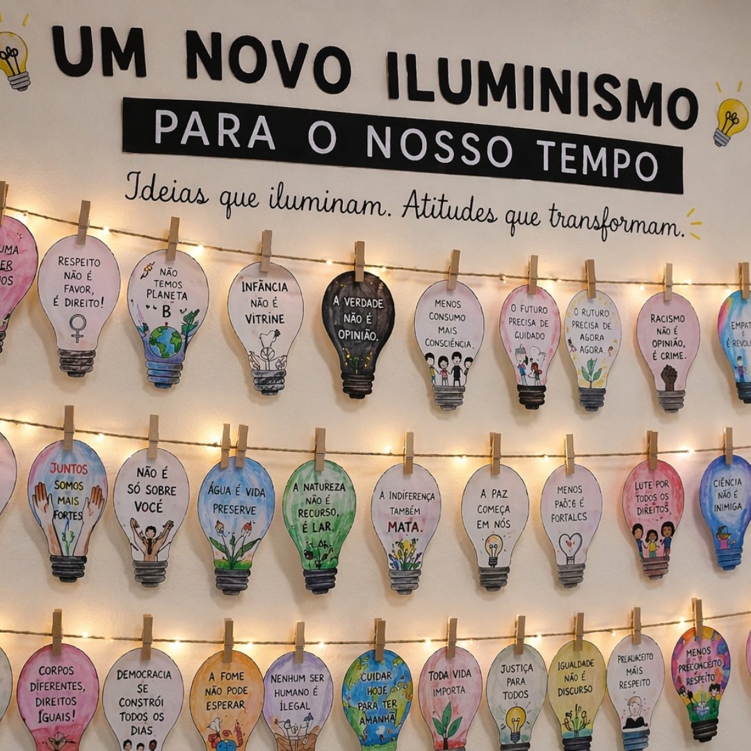 Atividade criativa e crítica em que os estudantes produzem uma lâmpada-manifesto, articulando o conteúdo estudado com problemas urgentes do presente. A proposta estimula: