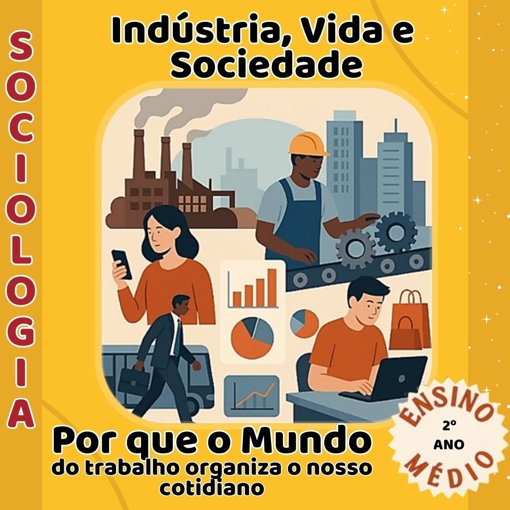 Material didático completo de Sociologia – 2º ano do Ensino Médio, referente às aulas 5 e 6 do 4º bimestre, com o tema “Indústria, Vida e Sociedade: por que o mundo do trabalho organiza o nosso cotidiano”.